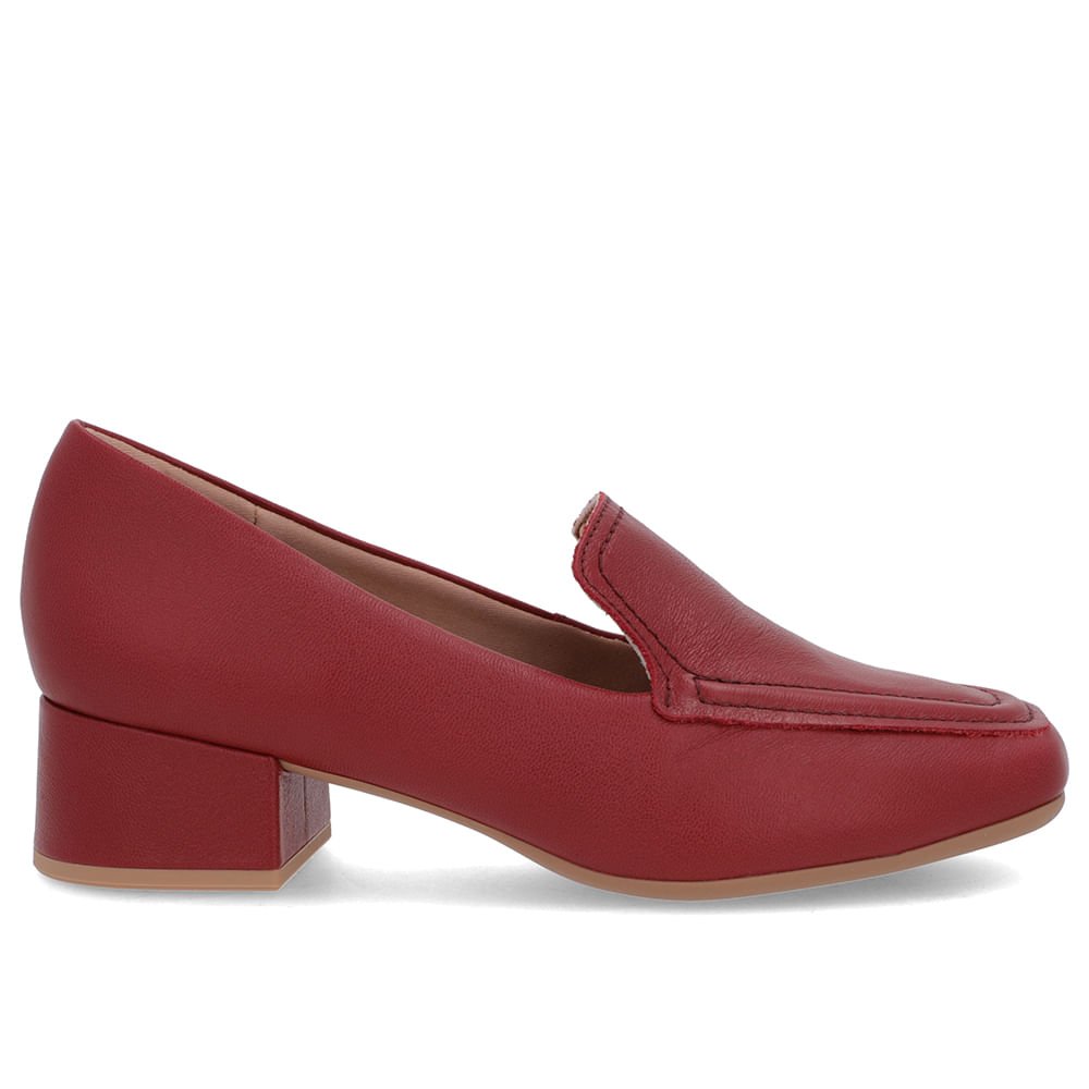 Loafer cabedal em couro napa new milano na cor vermelho rouge. O modelo possui tecnologia +Bem-Estar, com espumas posicionadas em pontos estratégicos na palmilha garantindo conforto e suavidade na pisada.