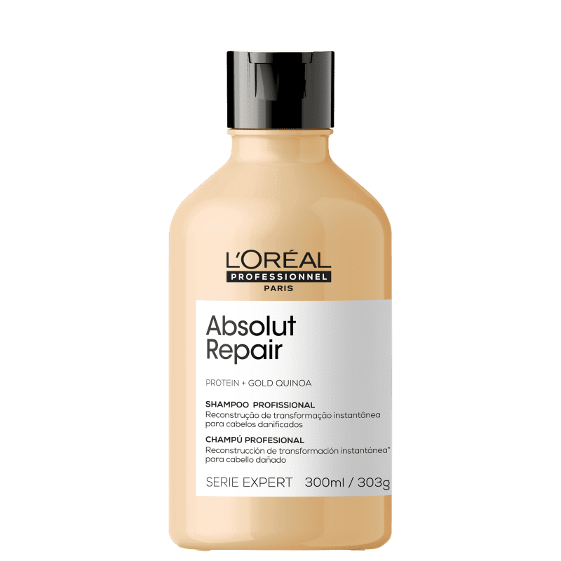 Sinta a transformação em seus cabelos com o Shampoo L'Oréal Professionnel Absolut Repair Gold Quinoa! Formulado com quinoa dourada e proteína de trigo, esse shampoo de tratamento proporciona uma reparação intensa, nutrindo profundamente os fios danificados e quebradiços. Diga adeus ao cabelo sem vida e opaco! Com Absolut Repair, você terá cabelos mais fortes, brilhantes e macios, com um toque leve e sedoso.