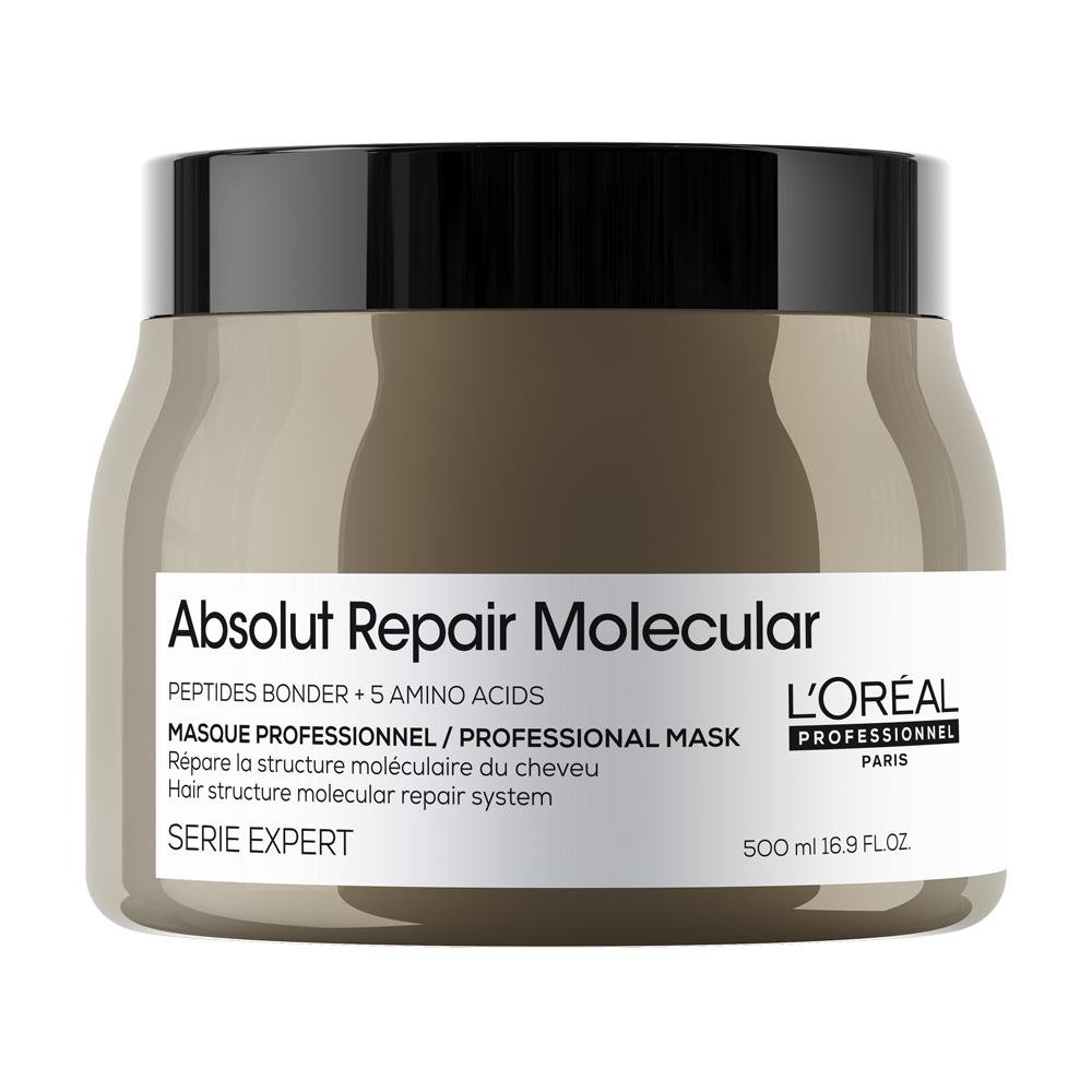 L’Oréal Professionnel Absolut Repair Molecular Máscara Concentrada Profissional, Repara os Danos & Recupera a Força, proporciona maciez & desembaraço extra, para todos os cabelos danificados a muito danificados, SERIE EXPERT, 500ml