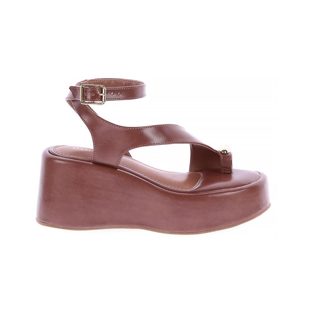 Ludmila - Sandália Plataforma Caramelo com Detalhe Dourado Dedo