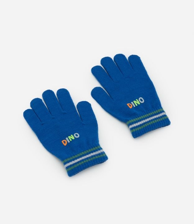 Luva Infantil em Efeito Tricô com Detalhe Dino – Tam 3 a 8 Azul