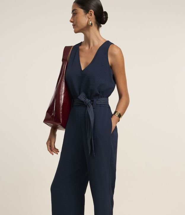 Macacão Airflow Decote V com Cinto com Pesponto contrastante