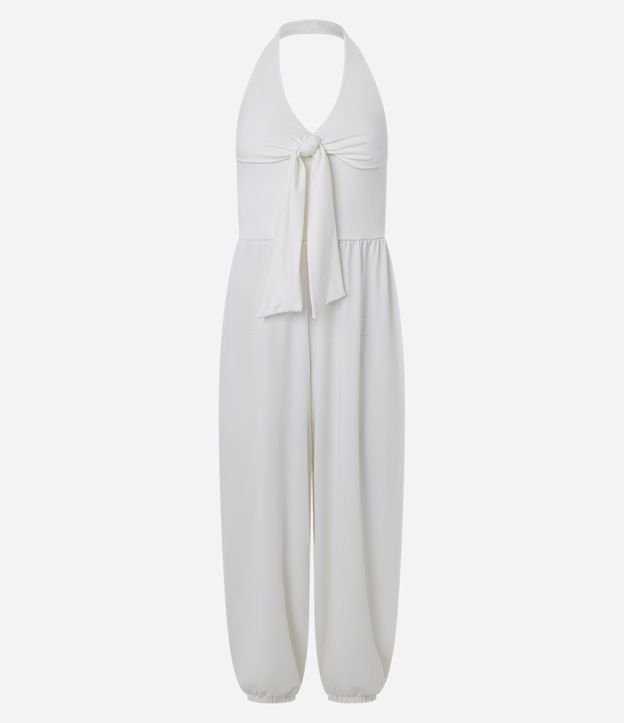 Macacão Aladim em Piquet com Nó no Busto Branco