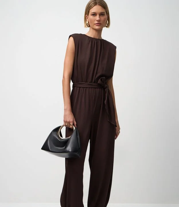 Macacão Aladim Longo com Amarração na Cintura Marrom