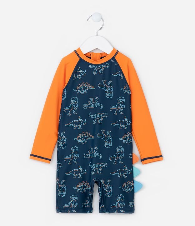 Macacão de Praia Infantil com Proteção UV e Estampa Dinos - Tam 1 a 4 Anos