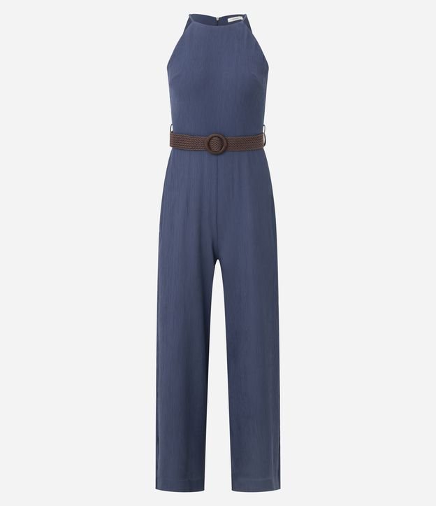 Macacão em Alfaiataria com Cinto Texturizado Azul
