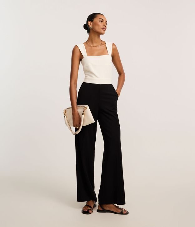 Macacão em Crepe com Decote Quadrado e Alça Larga Preto/Branco