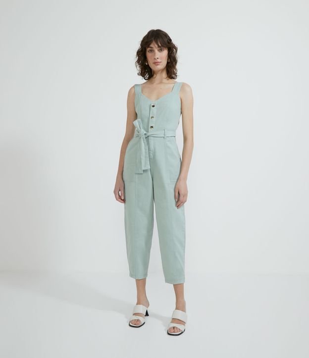 Macacão em Sarja com Botões e Amarração