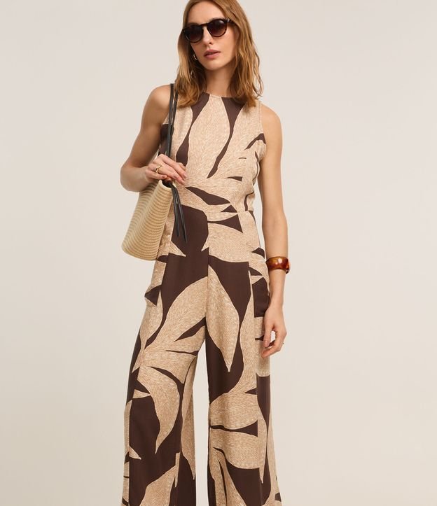 Macacão em Viscose com Alça Larga e Bordado Folhagem