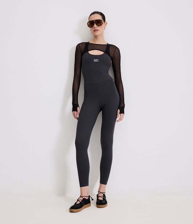 Macacão Esportivo em Microfibra com Recorte Vazado nas Costas Cinza