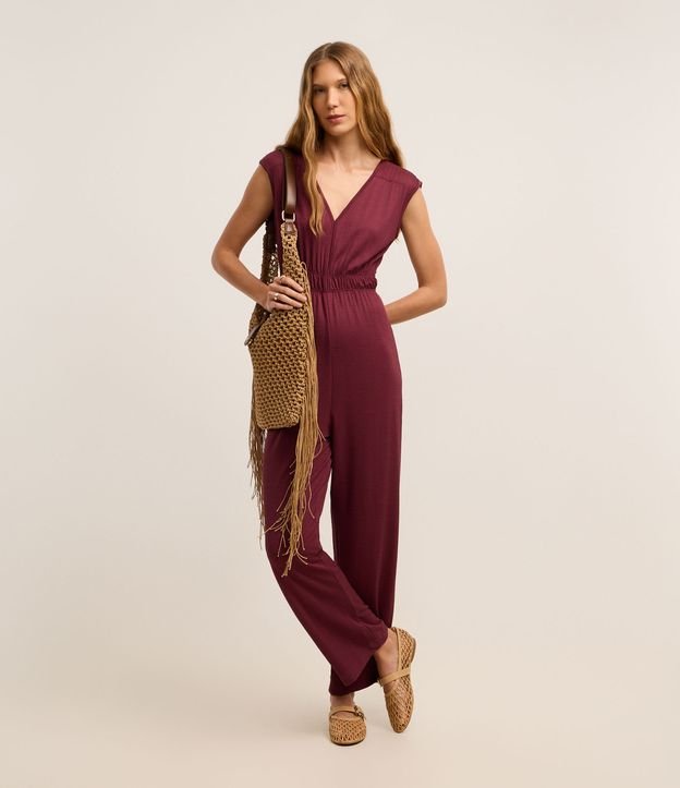 Macacão Flare em Viscose com Decote V e Elástico na Cintura