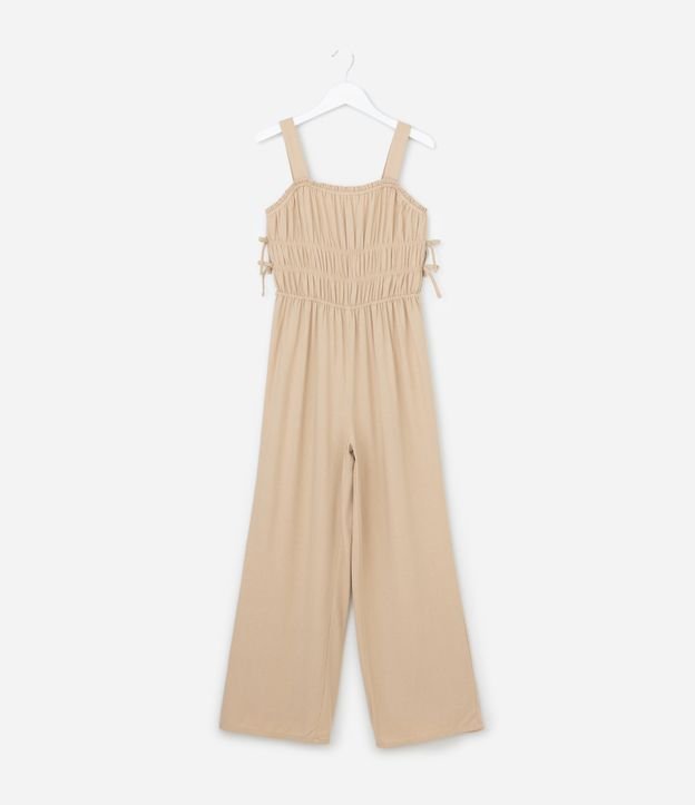 Macacão Infantil com Alças e Franzidos – Tam 5 a 14 Anos Bege Claro