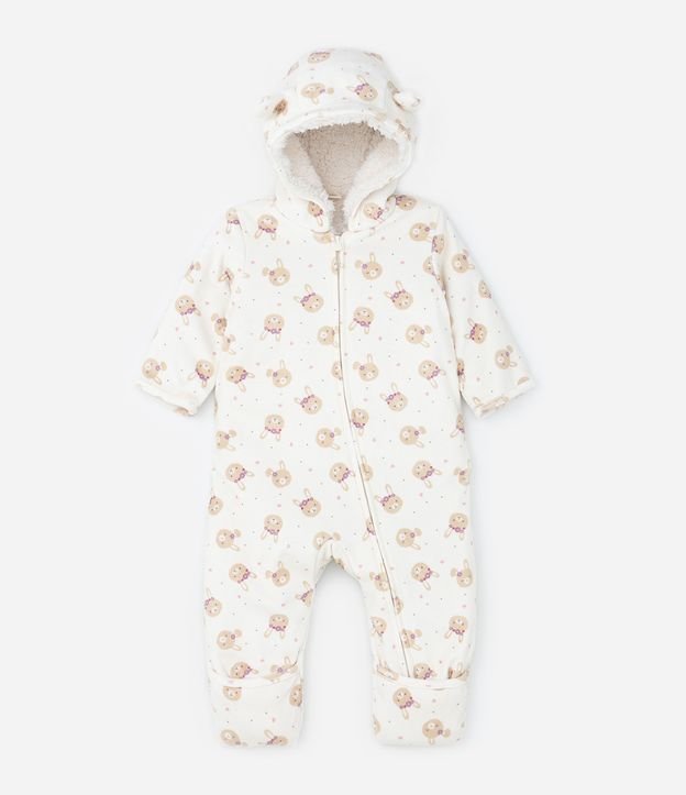 Macacão Infantil com Forro Sherpa e Capuz com Orelhinhas - Tam 0 a 18 meses