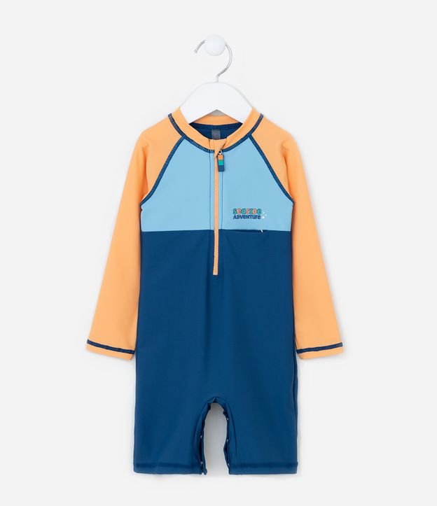 Macacão Infantil com Proteção UV e Blocos de Cor - Tam 1 a 4 Anos Azul/Laranja