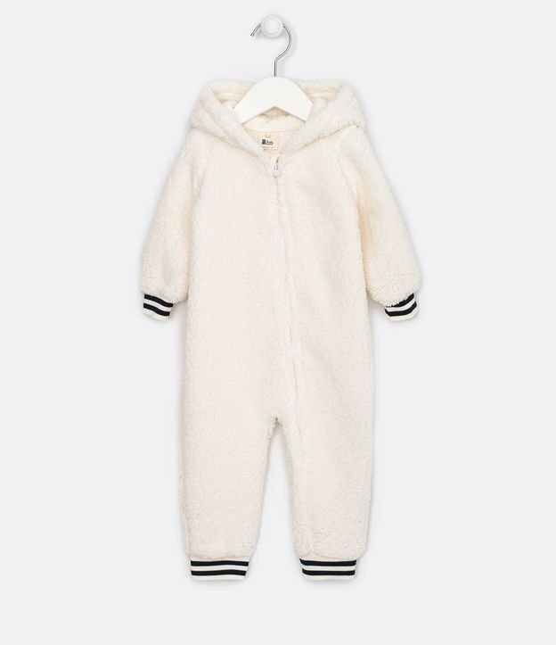 Macacao Infantil em Fleece com Capuz e Ribana Listrada - Tam 0 a 18 meses
