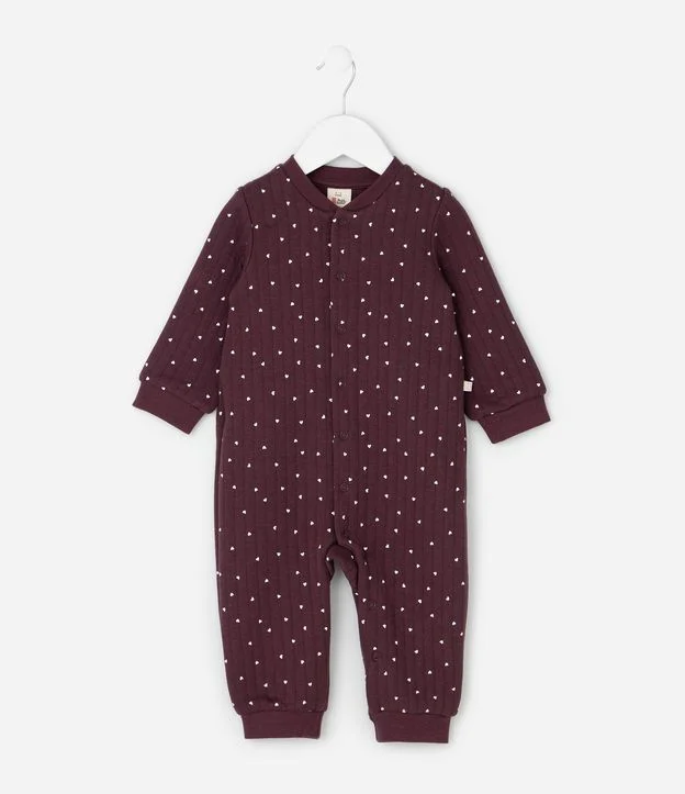Macacão Infantil em Matelassê com Estampa Poá Corações – Tam RN a 24 Meses Vinho