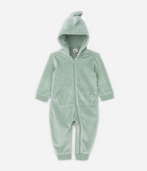Macacão Infantil em Plush com Capuz e Crista de Dino - Tam 0 a 24 meses