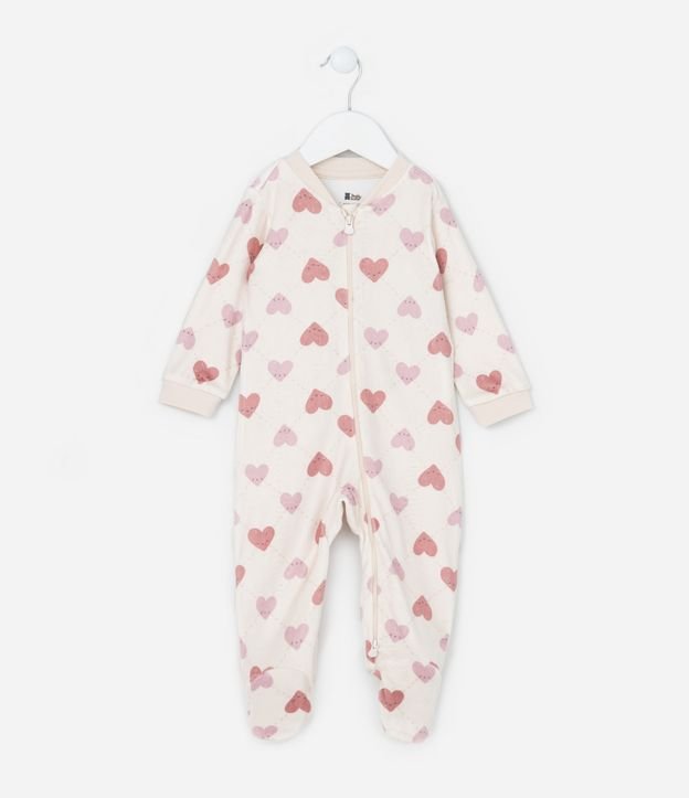 Macacão Infantil em Plush com Estampa Corações - Tam RN a 18 meses
