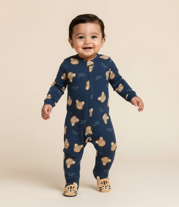 Macacão Infantil em Suedine com Estampa Tigre - Tam RN a 24 meses