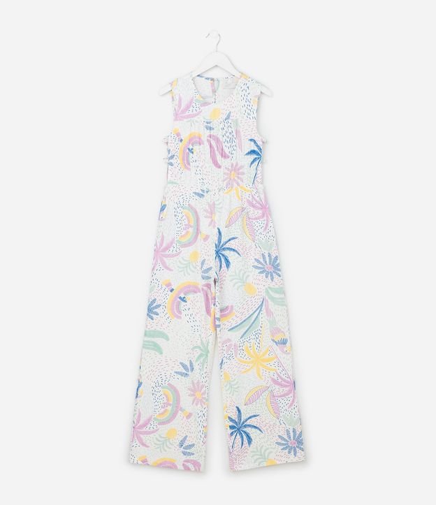 Macacão Infantil em Viscolinho com Estampa Tropical - Tam 5 a 14 Anos Branco