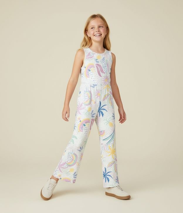 Macacão Infantil em Viscolinho com Estampa Tropical - Tam 5 a 14 Anos Branco