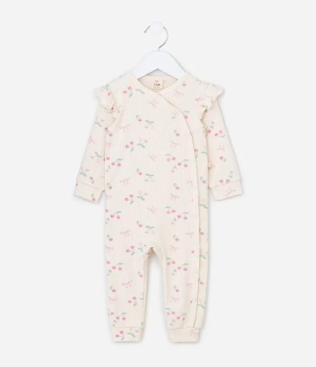 Macacão Infantil Manga Longa com Estampa Cerejinha – Tam 0 a 18 Meses Bege Claro