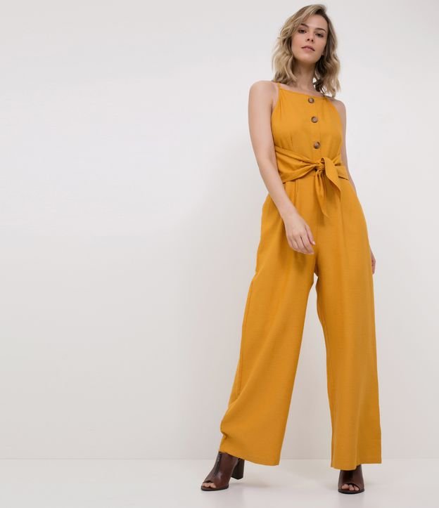 Macacão  Liso Pantacourt com Botões e Amarracão em Linho