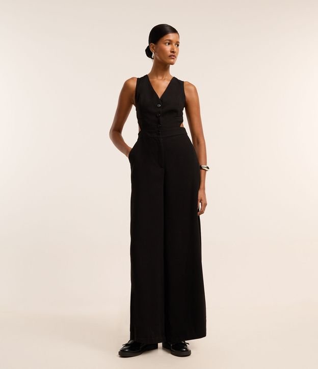 Macacão Longo em Crepe com Abotoamento e Detalhe Vazado
