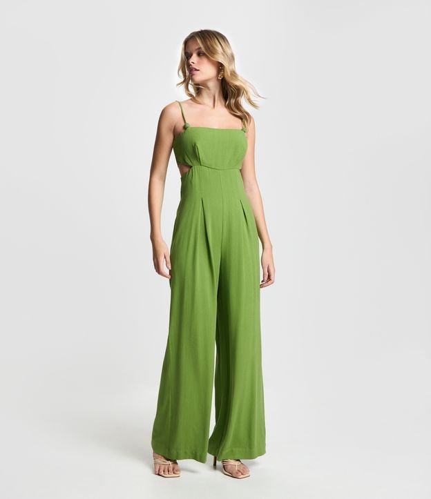 Macacão Longo em Viscolinho com Recortes Vazados e Pregas