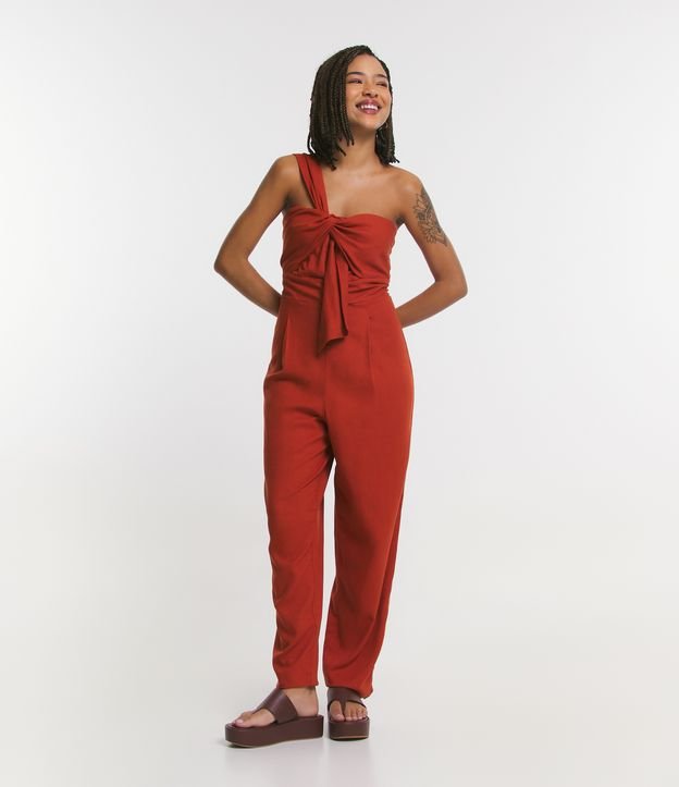 Macacão Longo em Viscose e Linho com Busto Marcado