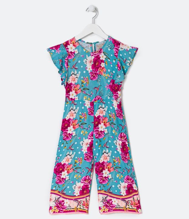 Macacão Pantacourt Infantil em Viscose com Estampa Floral - Tam 5 a 14 anos