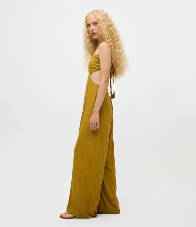 Macacão Pantalona com Alças Duplas e Recorte no Busto Amarelo