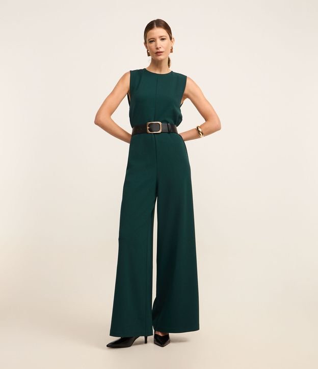 Macacão Pantalona em Crepe com Abertura nas Costas
