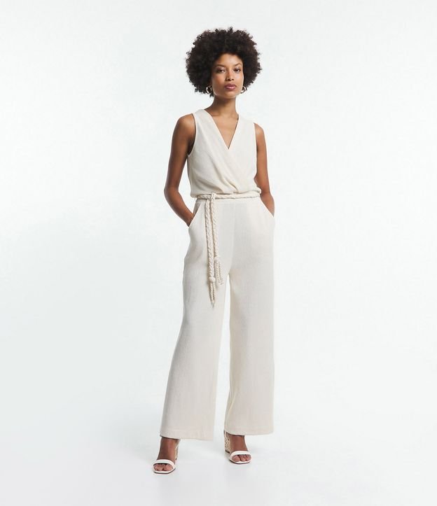 Macacão Sem Manga em Moletinho Texturizado com Cinto Corda