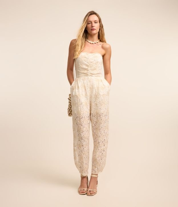 Macacão Tomara que Caia Texturizado com Renda