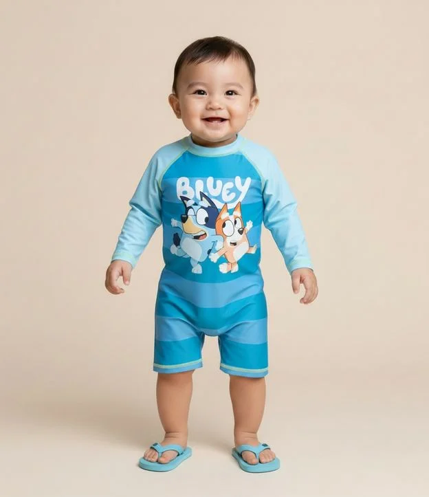 Macacão UV Infantil Manga Longa com Estampa Bluey – Tam 6 meses a 4 anos