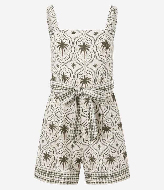 Macaquinho alças largas com elásticos, confeccionado em viscolinho, decote quadrado, lastex nas costas e pssantes com cinto de tecido. Este produto possui material mais sustentável em sua composição, sendo ambientalmente mais responsável.