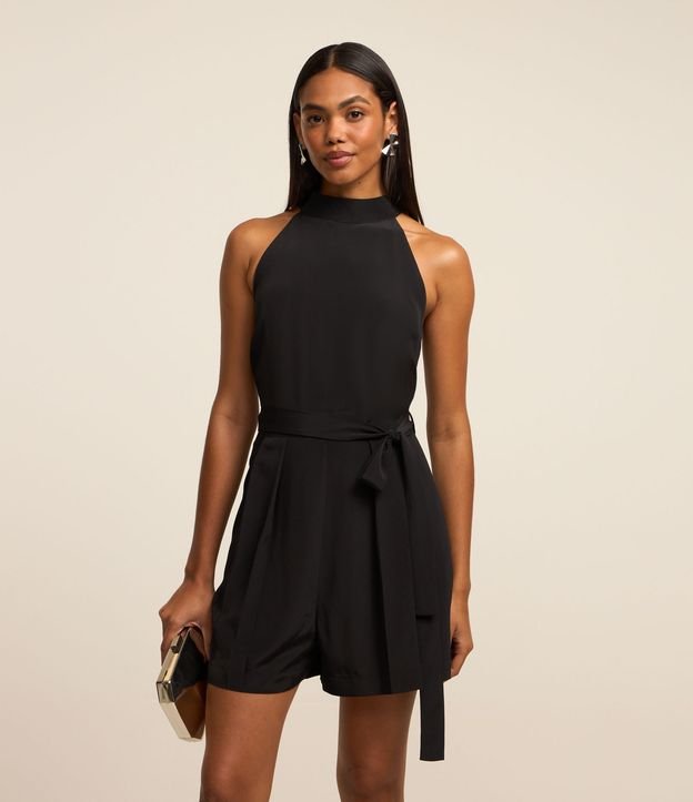 Macaquinho em Crepe com Amarração na Cintura Preto