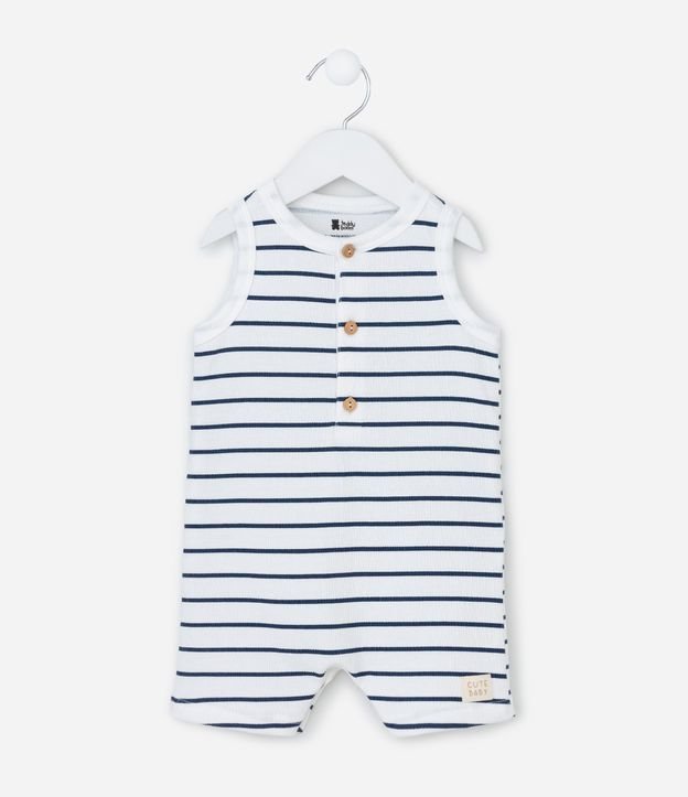 Macaquinho Infantil com Estampa de Listras - Tam 0 a 18 Meses Branco/Azul