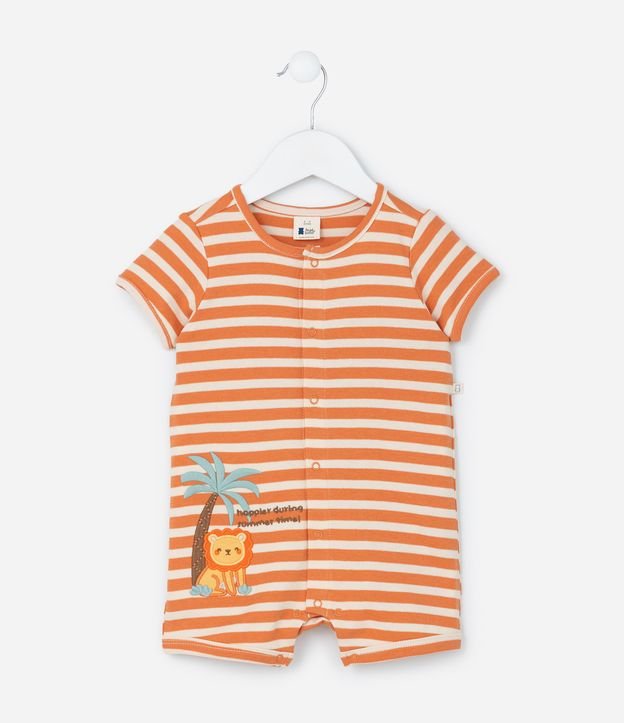 Macaquinho Infantil em Suedine com Estampa de Leãozinho e Listras - Tam 0 a 18 Meses Laranja