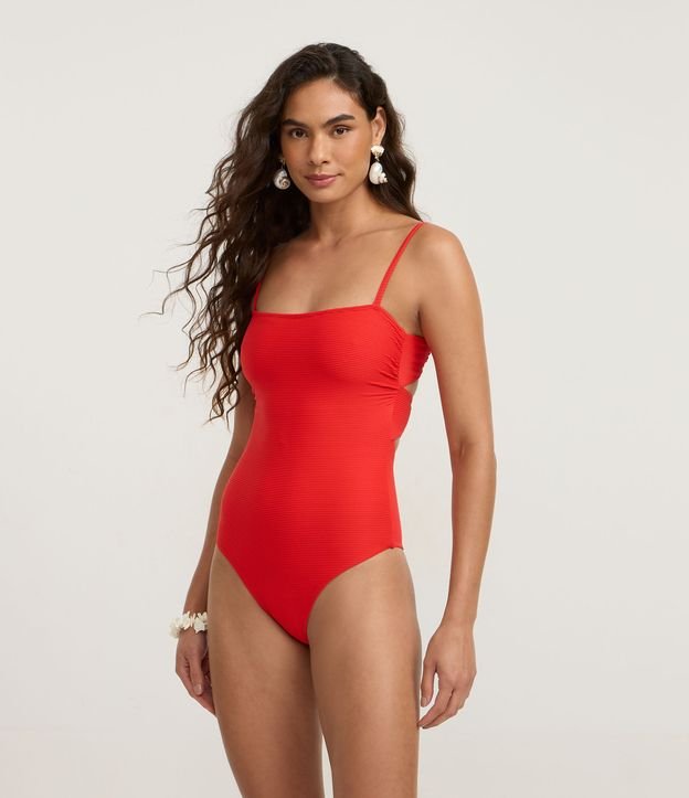 • Maiô com Decote Reto em Microfibra e Costas Transpassadas Vermelho 1
