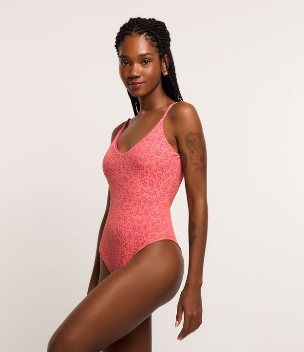 Maiô em Microfibra com Decote nas Costas e Jacquard Floral