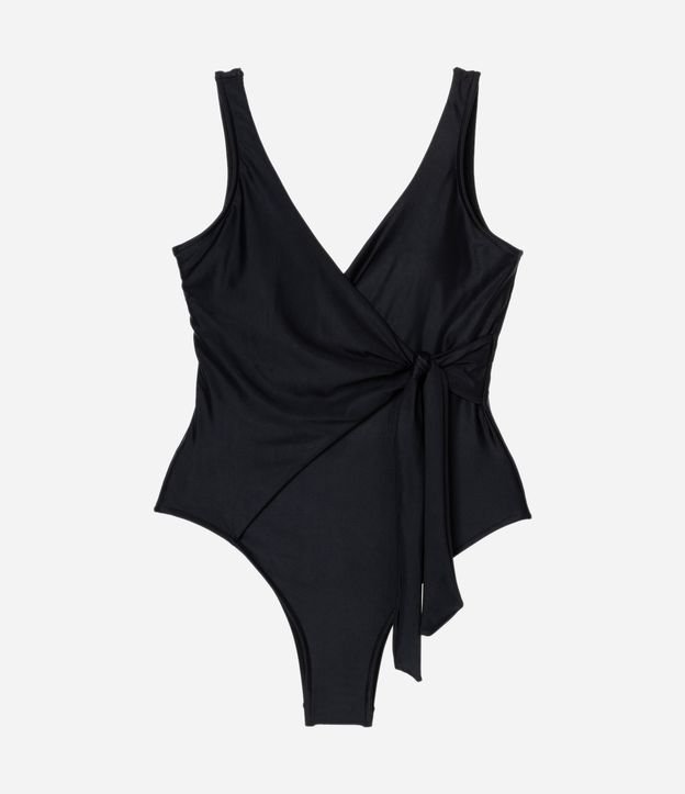 Maiô Em Microfibra Liso Com Transpasse E Amarração Preto