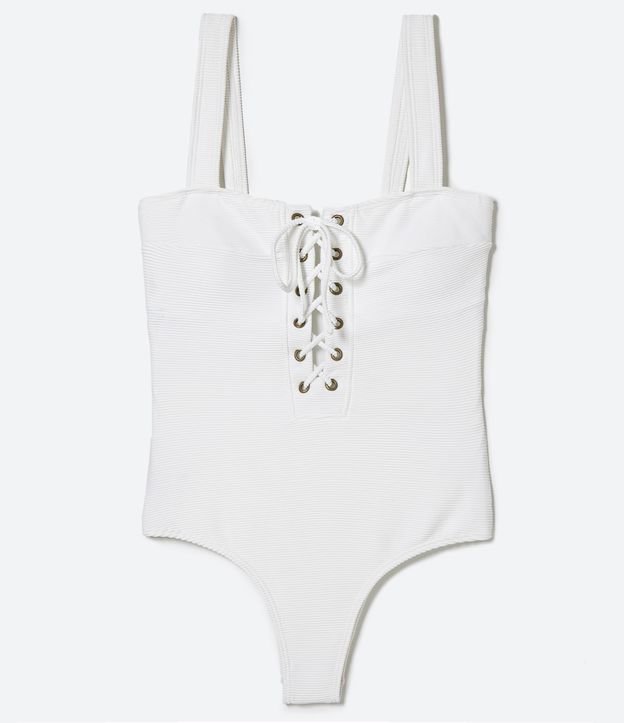 Maiô em Poliamida Canelada com Decote Reto e Alça Larga