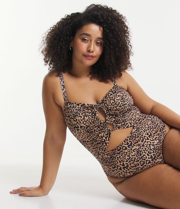 Maiô em Poliamida com Detalhes Vazado no Busto e Estampa Animal Print Curve & Plus Size