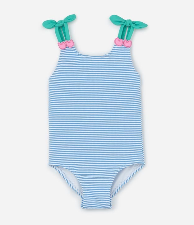 Maiô Infantil com Estampa Listrada e Cerejas Aplicadas - Tam 1 a 4 Anos 1 ao 4 Azul/Branco