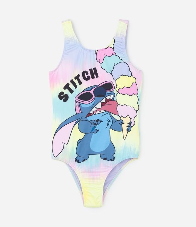Maiô Infantil com Estampa Tie Dye e Stitch com Proteção UV - Tam 5 a 14 Anos