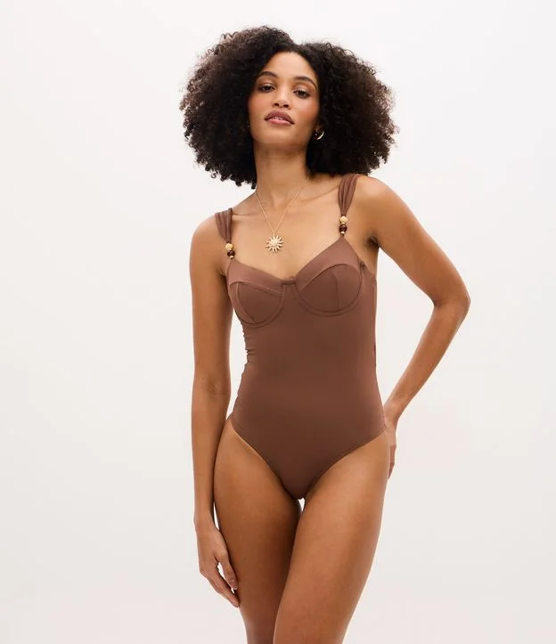 Maiô Meia Taça em Microfibra com Aviamentos Marrom