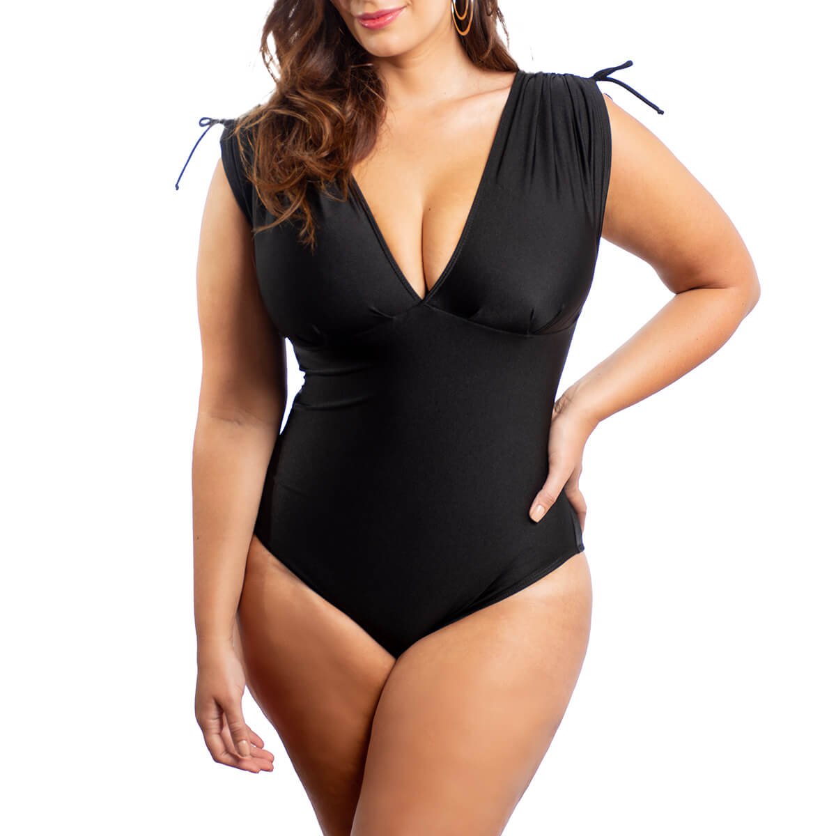 Maiô Plus Size Liso com Decote em V e Amarração nos Ombros