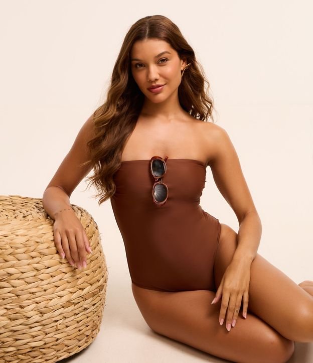 Maiô Sem Alça em Microfibra com Busto Drapeado Marrom